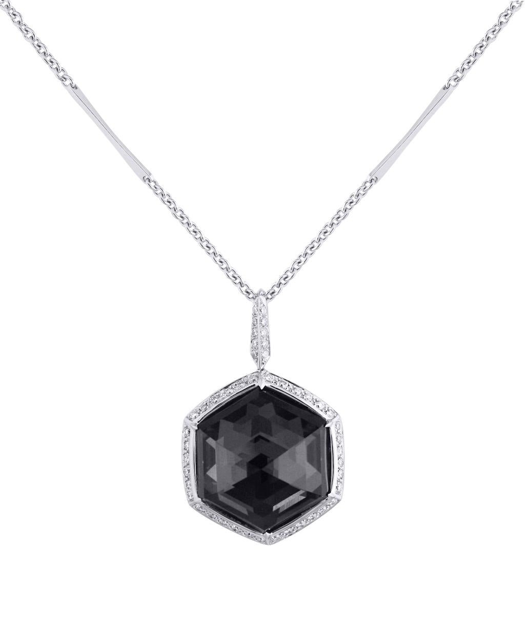 18 Karat White Gold Hexagon Hematite Doublet Pendant with Diamonds ; ;