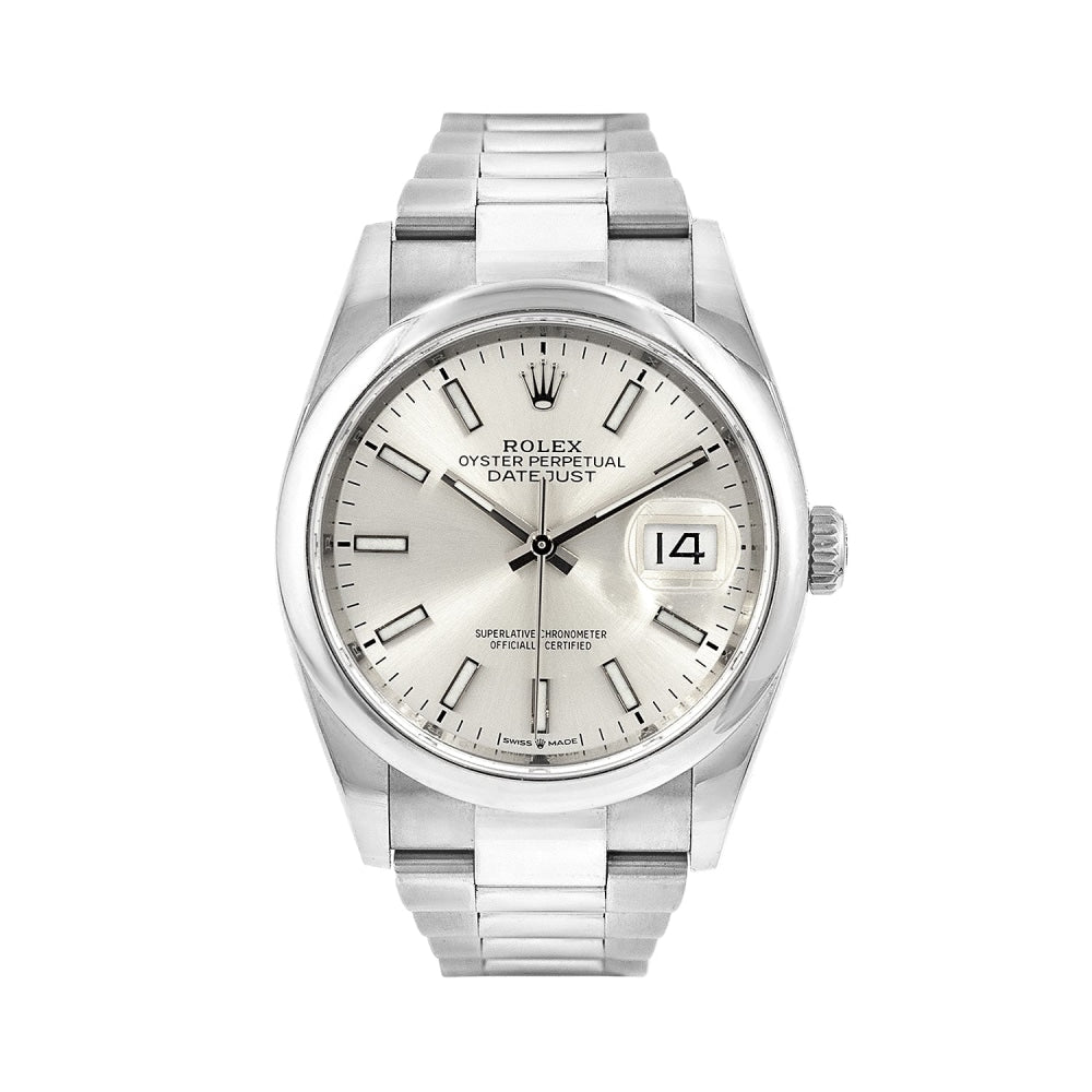 Rolex Datejust in stainless steel. Auto w/ sweep seconds and date. 36 mm case size. Ref 126200. Classic Rolex Datejust 126200 watch is made out of Stainless steel on a Stainless Steel bracelet with a Stainless Steel Deploy buckle. This Rolex watch has a 36mm case with a Silver Stick dial.