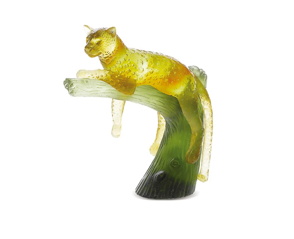 Daum Crystal Amber Panther on Green Tree