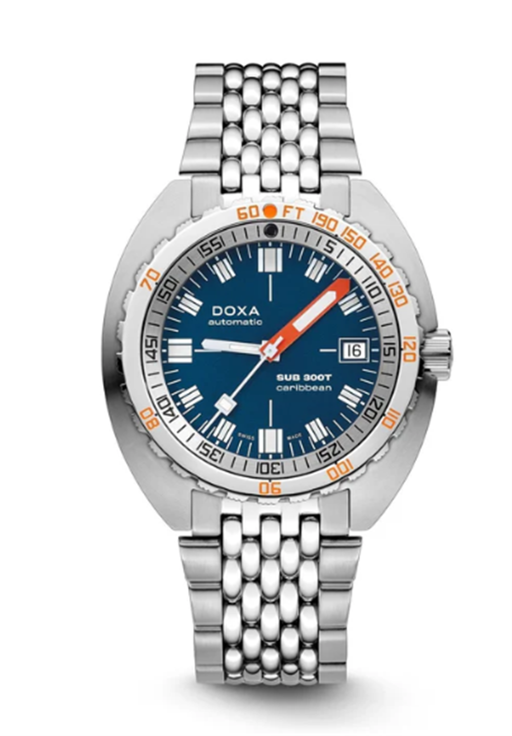 In 1968, DOXA launched the SUBΒ 300TΒ Conquistador, the first general public diver's watch equipped with a helium release valve. 50 years later, the new SUBΒ 300T presented in September 2019 pays tribute to the groundbreaking original.