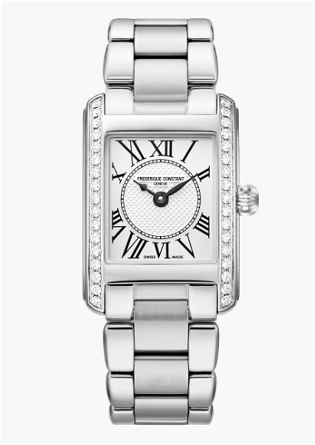 The seamless lines and elegant polished case reveal a classical white dial showcasing intricate βclous de Parisβ decoration and traditional Roman numeral indexes. The carrΓ©e design of the smooth polished case perfectly blends and embellishes the feminine wrist for a flawless taylor-made match.