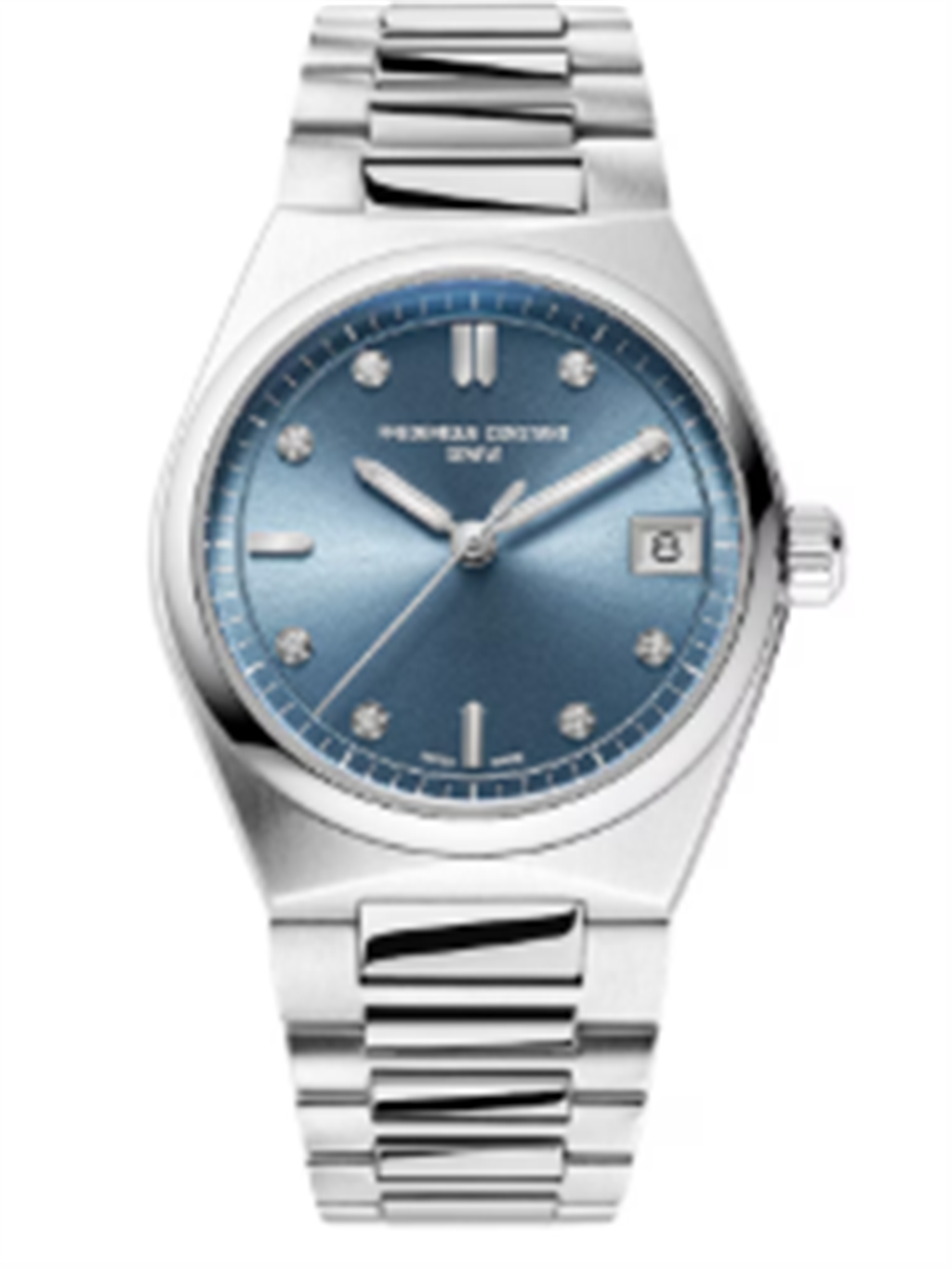 This Highlife Ladies Quartz features the integrated and interchangeable bracelet that has become the hallmark of the collection. Featuring a date window, this style has an icy blue with sunray finishing on the dial, accented by silver and diamond indexes. The frosty theme continues to the brushed and polished stainless steel 3-link bracelet. Can be customized by swapping the original bracelet for the white rubber strap supplied with the watch.