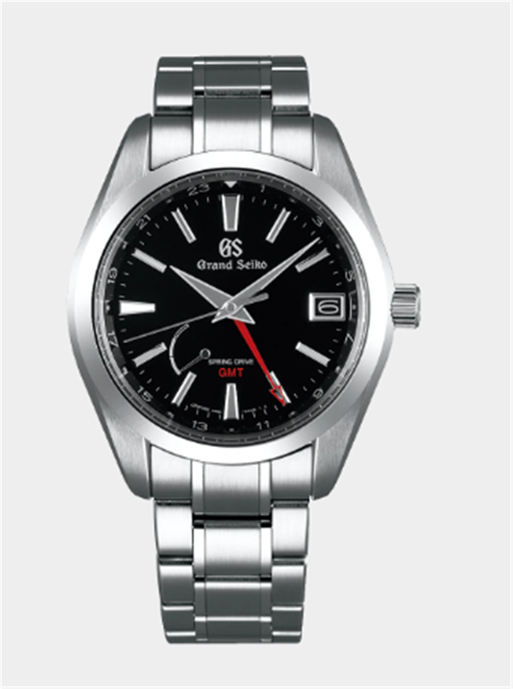 SBGE211 is a classic interpretation of the Grand Seiko Style. Its case puts on display Grand Seiko's mastery of finishing, with a beautiful blend of Zaratsu-polished and hairline surfaces. The black dial features multi-faceted hands and hour indexes, a red GMT hand paired with a GMT track along the edge of the dial, and a power reserve indicator by 8 oβclock. SBGE211 is powered by Spring Drive, Grand Seikoβs unique caliber that combines the motive force of a mainspring with the high precision of a quartz watch. Emblematic of Spring Drive, the second hand glides around the dial, reflecting the continuous flow of time itself.