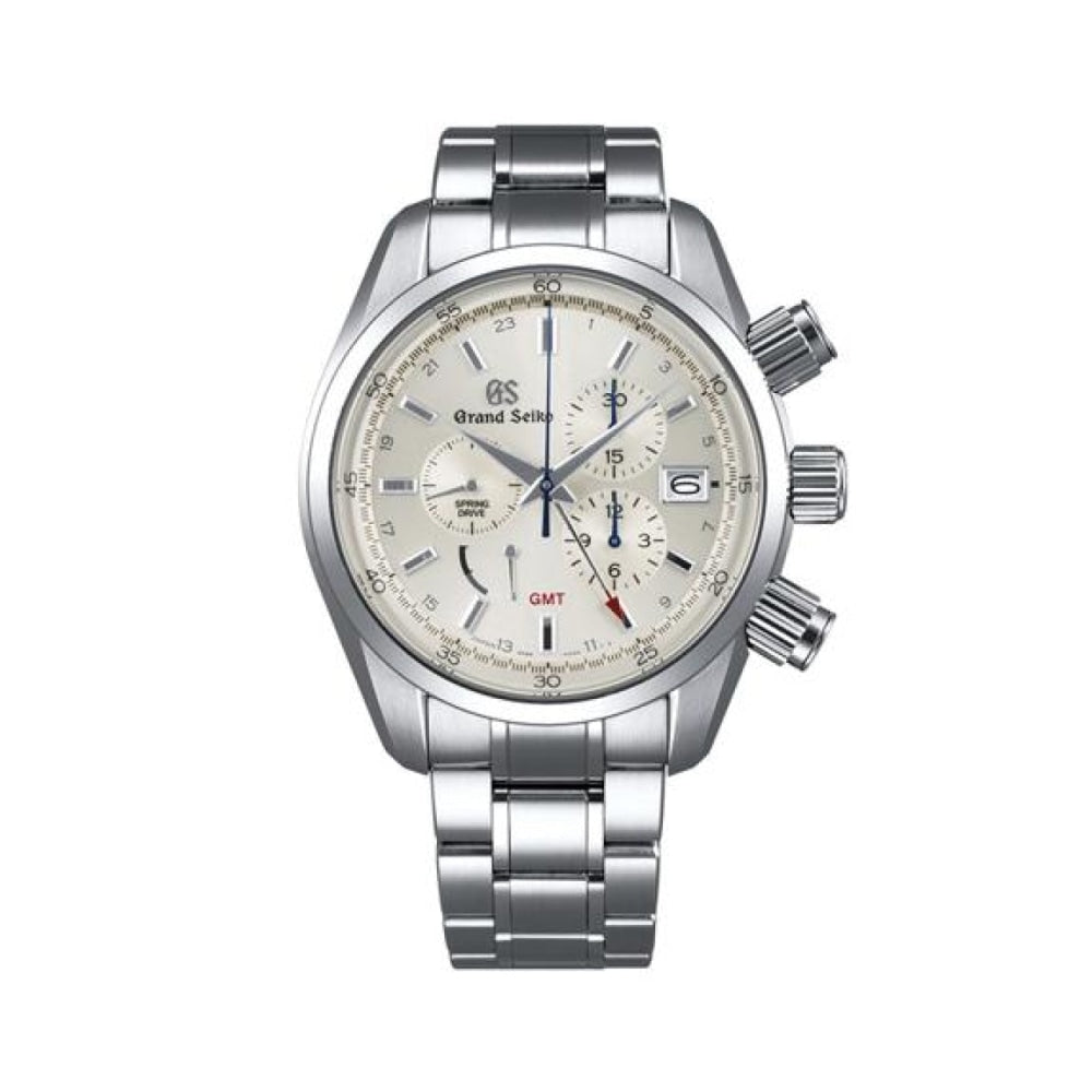 The first ever Grand Seiko chronograph, Reference SBGC201 is powered by Grand Seikoβs unique Spring Drive caliber, which combines the motive force of a mainspring with the high precision of a quartz watch. It allows the watch to maintain precise timekeeping while also incorporating accurate chronograph capabilities and a GMT function, all with a three-day power reserve.Inspired by a stop watch that was used in the 1964 Tokyo Olympics, Reference SBGC201 has pushers with a unique, two-stage construction. Designed with a ready stage so that the chronograph can be armed by pressing the button half way, youβll always get an accurate start. There is also a screw lock system on each pusher that prevents the chronograph from being activated unintentionally. The champagne dial comes to life with blued steel hands on the chronograph functions and a red-tipped GMT hand.