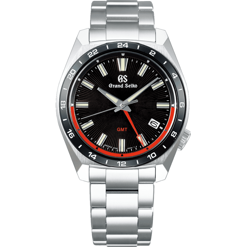 This quartz GMT creation combines form and function deliver the precision, durability and ease of use that are the hallmarks of Grand Seiko. The muscular steel case has a ceramic bezel whose hardness protects it from scratches and ensures its lasting beauty. The orange of the GMT hand is mirrored in the dial ring to make it easy to read the 24 hour hand at a glance and the GMT hand is illuminated by a Lumibrite that emits a different color than that of the hour and minute hands and indexes, ensuring high legibility even in the dark. The twin pulse quartz caliber 9F86 delivers the high torque needed to keep the wide hands moving precisely and offers the wearer the convenience of being able to change the time zone without stopping the seconds hand.