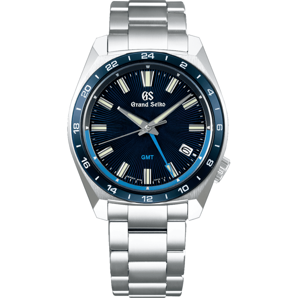 This quartz GMT creation combines form and function deliver the precision, durability and ease of use that are the hallmarks of Grand Seiko. The muscular steel case has a ceramic bezel whose hardness protects it from scratches and ensures its lasting beauty. The light blue of the GMT hand is mirrored in the dial ring to make it easy to read the 24 hour hand at a glance and the GMT hand is illuminated by a Lumibrite that emits a different color than that of the hour and minute hands and indexes, ensuring high legibility even in the dark. The twin pulse quartz caliber 9F86 delivers the high torque needed to keep the wide hands moving precisely and offers the wearer the convenience of being able to change the time zone without stopping the seconds hand.