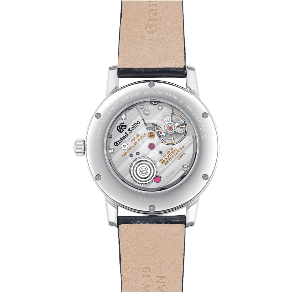Incorporating a clear exhibition caseback to demonstrate the movement for the first time. The main case is in Brilliant Hard Titanium, exclusive to Grand Seiko, as light as pure titanium but twice as hard as stainless steel and highly resistant to scratches. Its colour is brighter than other forms of titanium used for Grand Seiko and allows the Zaratsu polished surfaces to stand out even more prominently.The model is a remarkable blend of slimness, efficiency and precision: the case just 10.9mm in depth, the power reserve 72 hours and the accuracy rate is +5 to -3 seconds per day, the hour and minute hands carefully curved to follow the contour of the dual-curved sapphire crystal. Manual winding movement.