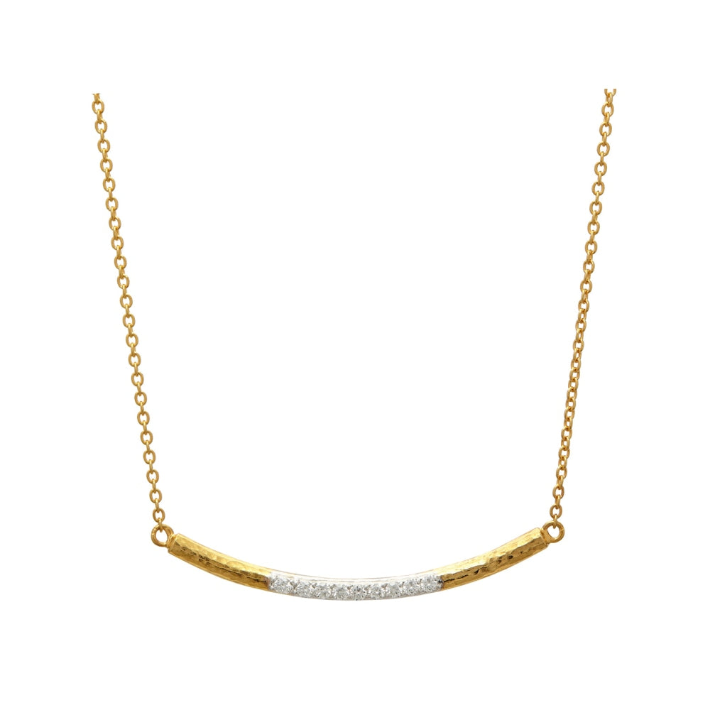 Handcrafted in Gurhan's workshop in Istanbul by artisans personally trained by Gurhan,Β thisΒ 22K goldΒ necklace features pavΓ© diamonds in the center of the bar.