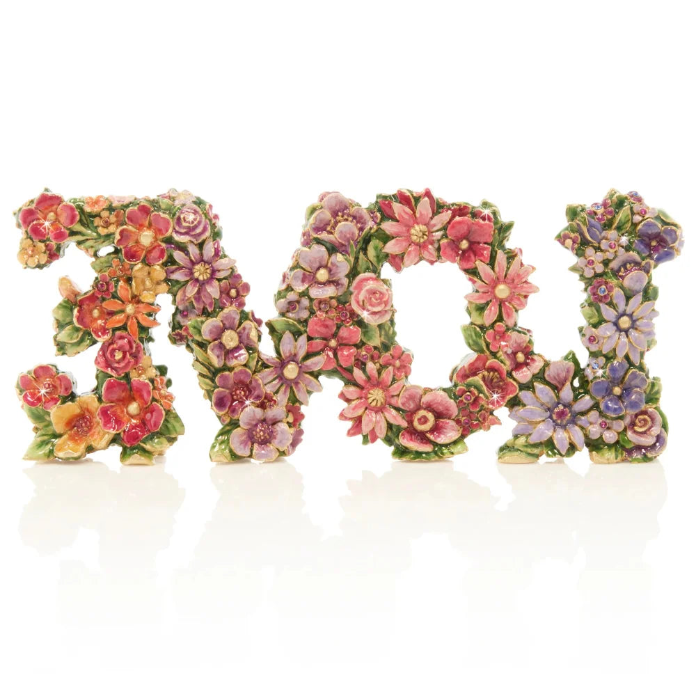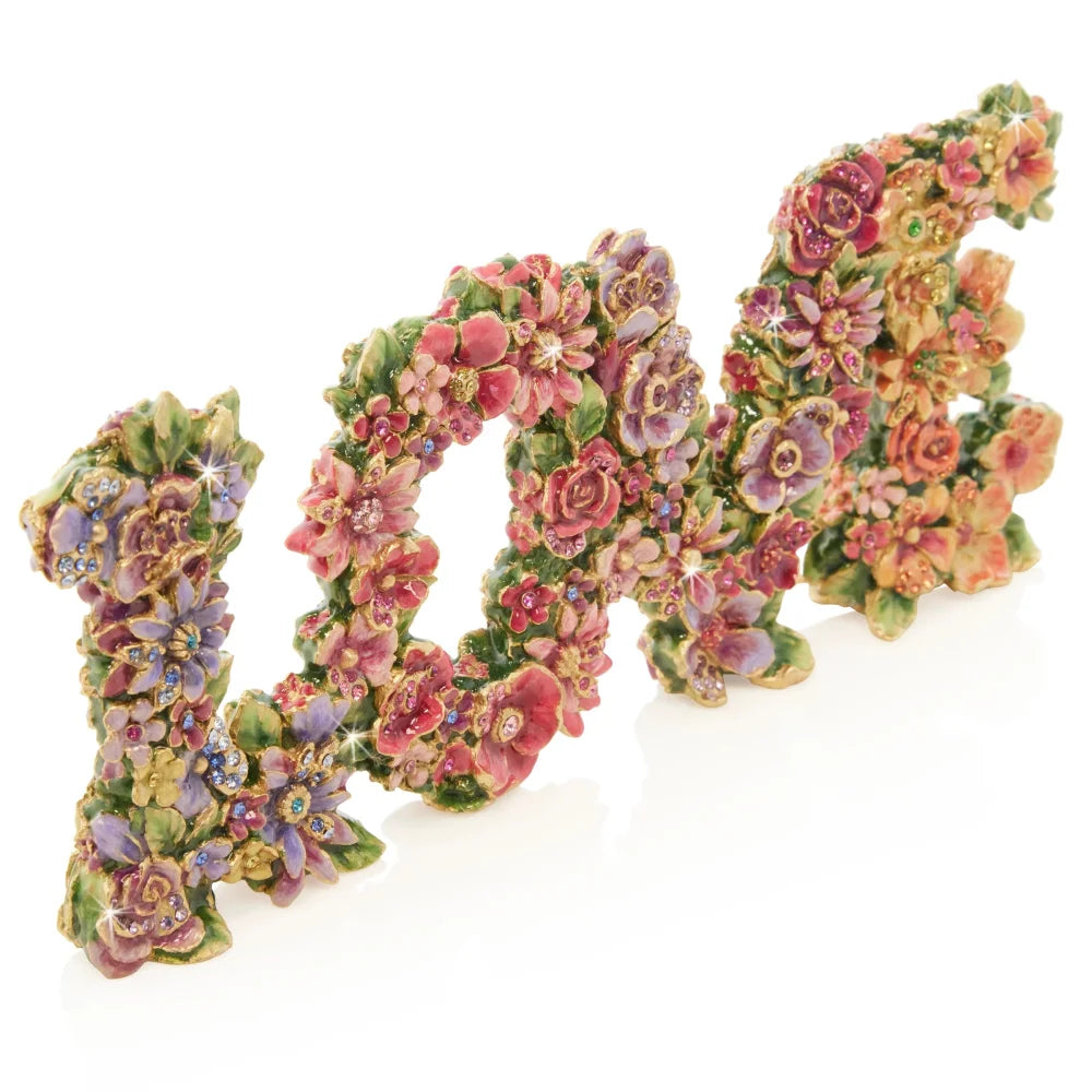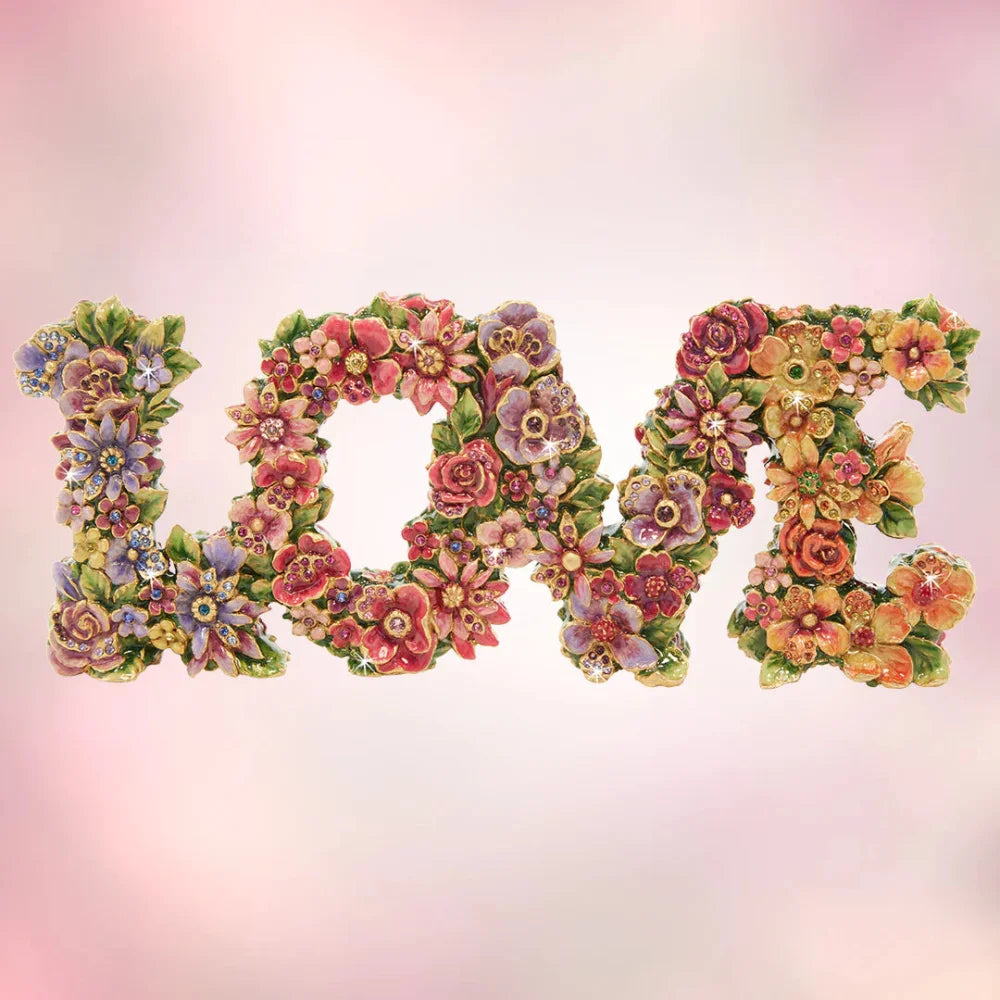 Flowers bloom anew in our floral Love Objet. Periwinkle, pastel pink, sherbet and violet flowers adorn this figurine in graceful style. Each petal is hand enameled and decorated with Swarovski® crystals, catching the light from every angle. Bring Love home today!