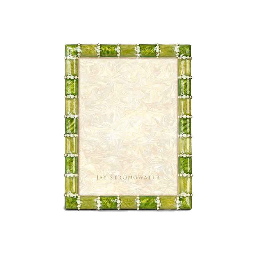 Translucent spring-green enamels shine over this Jay Strongwater 14K-gold-finished metal frame with Swarovski® crystal edgings. Crafted in Rhode Island and New York.