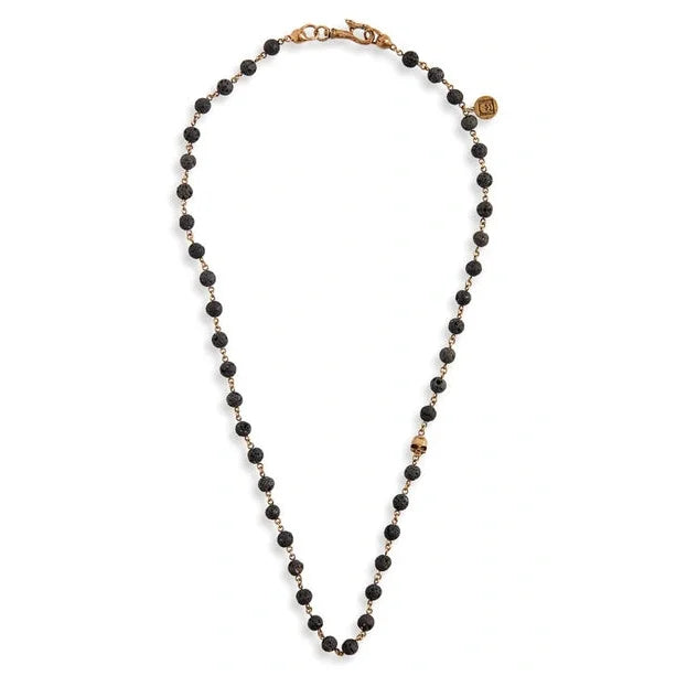 John Varvatos Brass Skull Bead with 6mm Cabochon Lava Beads Linked Version Brass Skull Tag Brass Fold Over Skull Clasp 24"
