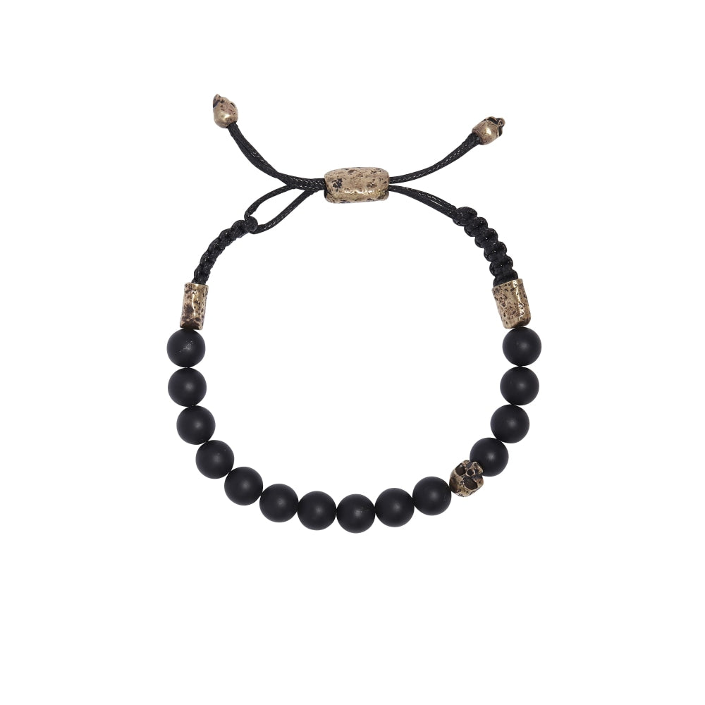 John Varvatos Brass Grey Obsidion Beaded Bracelet