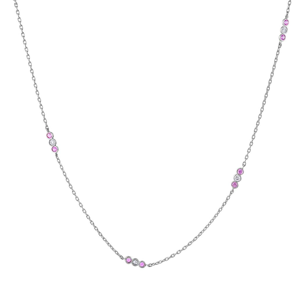 LaVianio Fashion 18K White Gold Pink Sapphire and Diamond Necklace