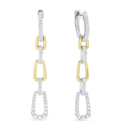 These drop earrings feature 14K white gold and yellow gold links, with sparkling diamonds on each white gold link.