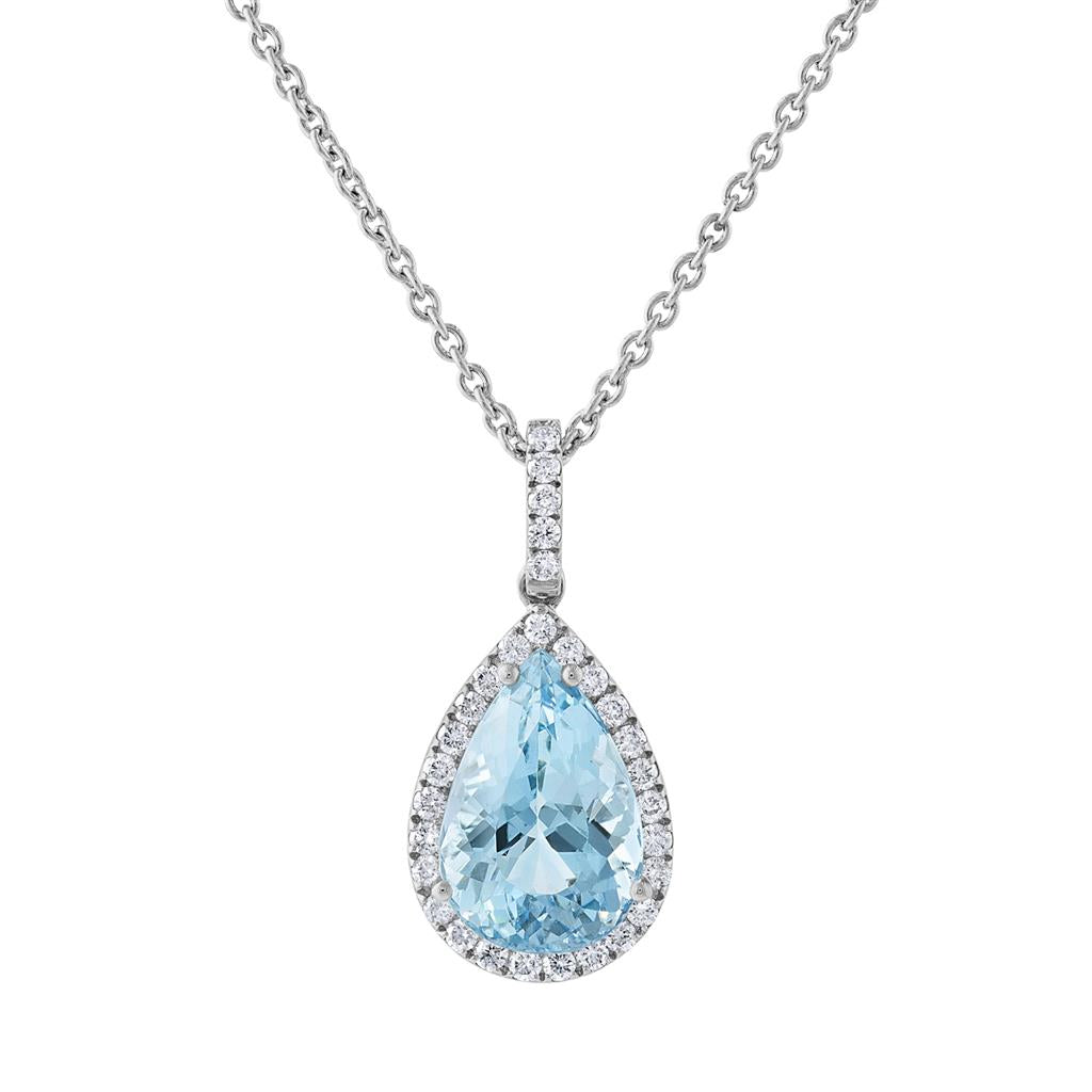 14K White Gold Aquamarine and Diamond Pendant Aquamarine 4.05 Carats Diamonds .40 Carats