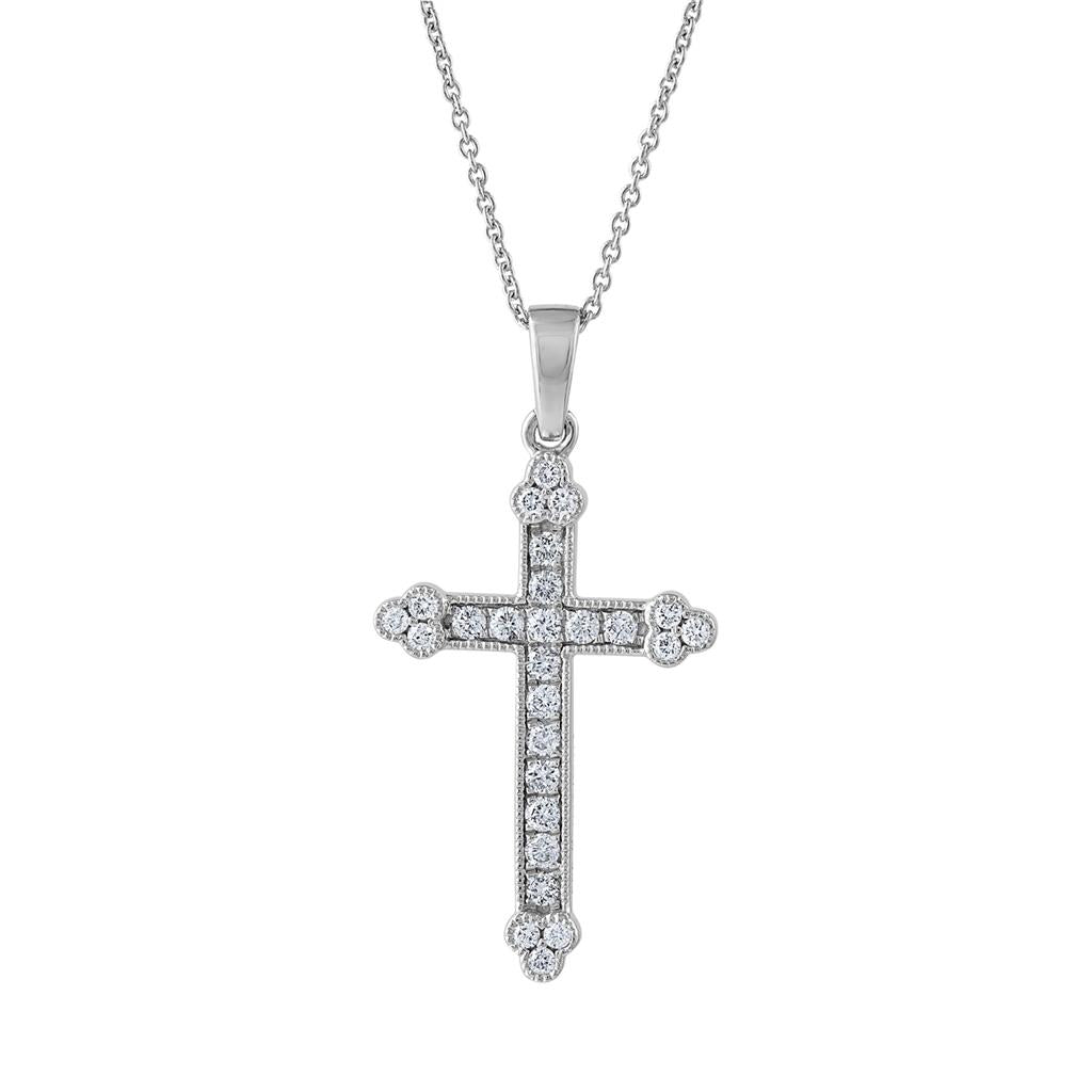 14K White Gold Diamond Cross 26 Diamonds .33 Carats