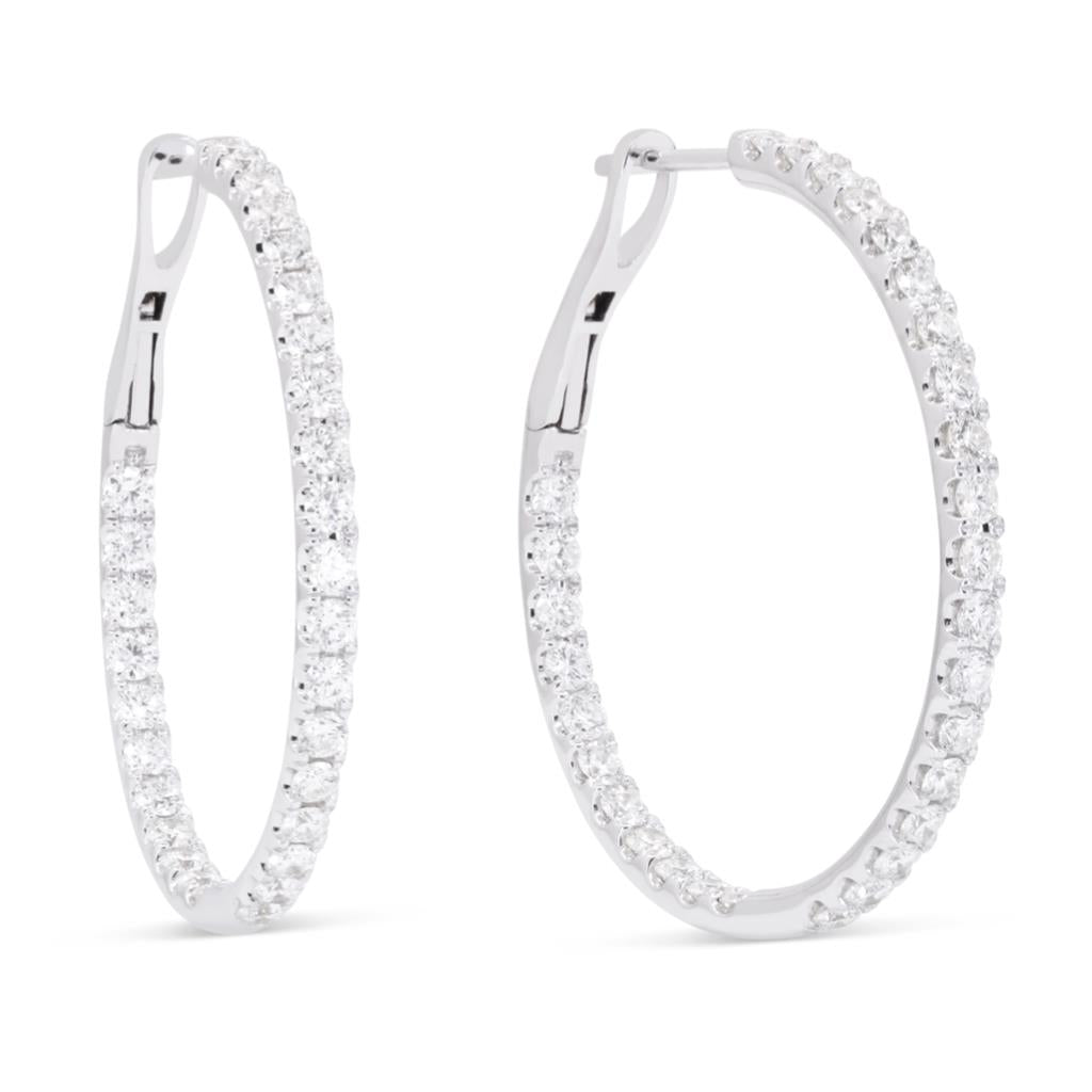 14K White Gold Diamond Hoop Earrings 60 Diamonds 2.61 Carats 35MM