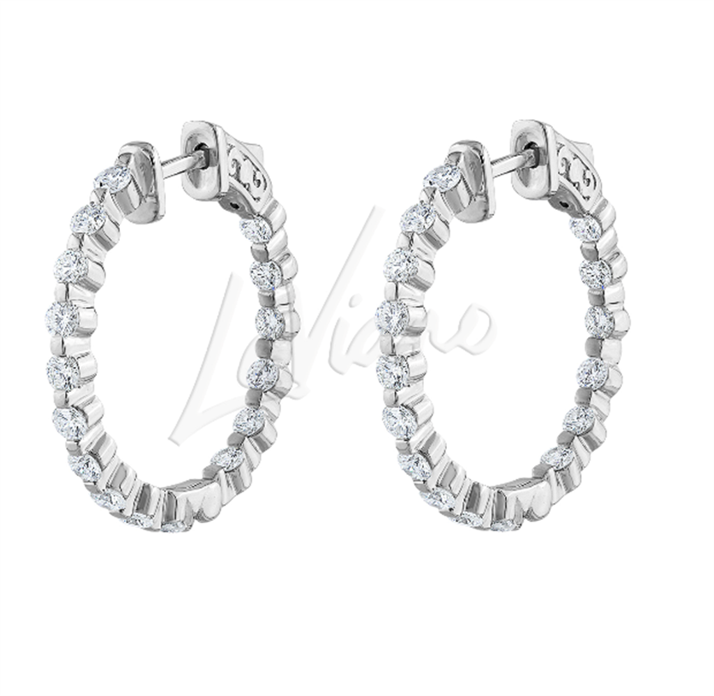 LaViano Fashion 14K White Gold Diamond Hoop Earrings Diamonds=1.78 Carats