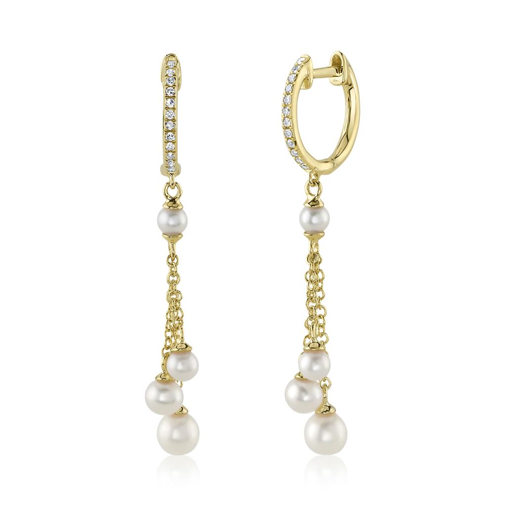 Shy Creation 14K Yellow Gold Cultured Pearl and Diamond Earrings