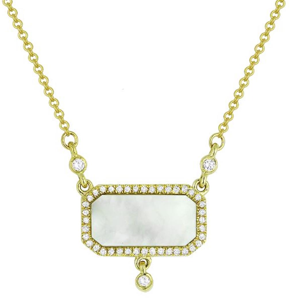 14K Yellow Gold Mother of Pearl and Diamond Necklace Diamonds .12 Carats