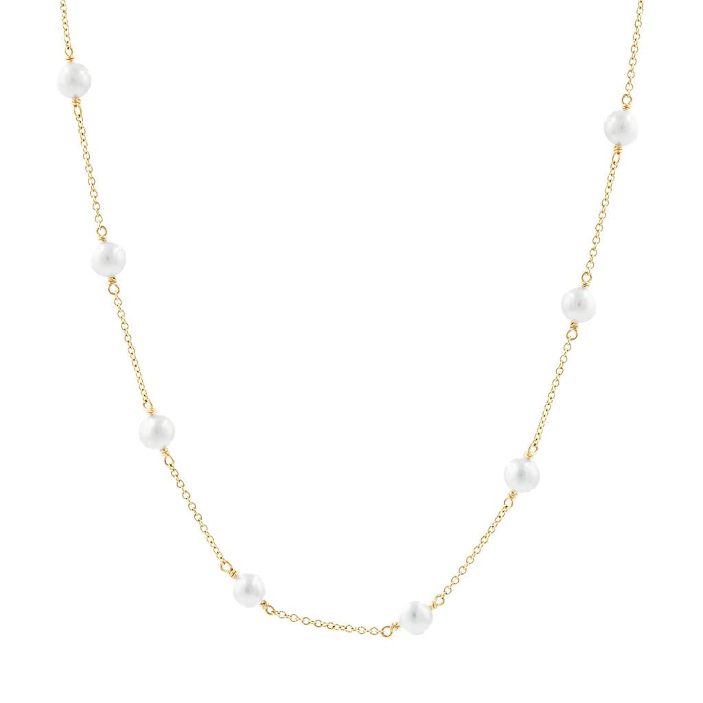LaViano Fashion 14K Yellow Gold Tin Cup Pearl Necklace