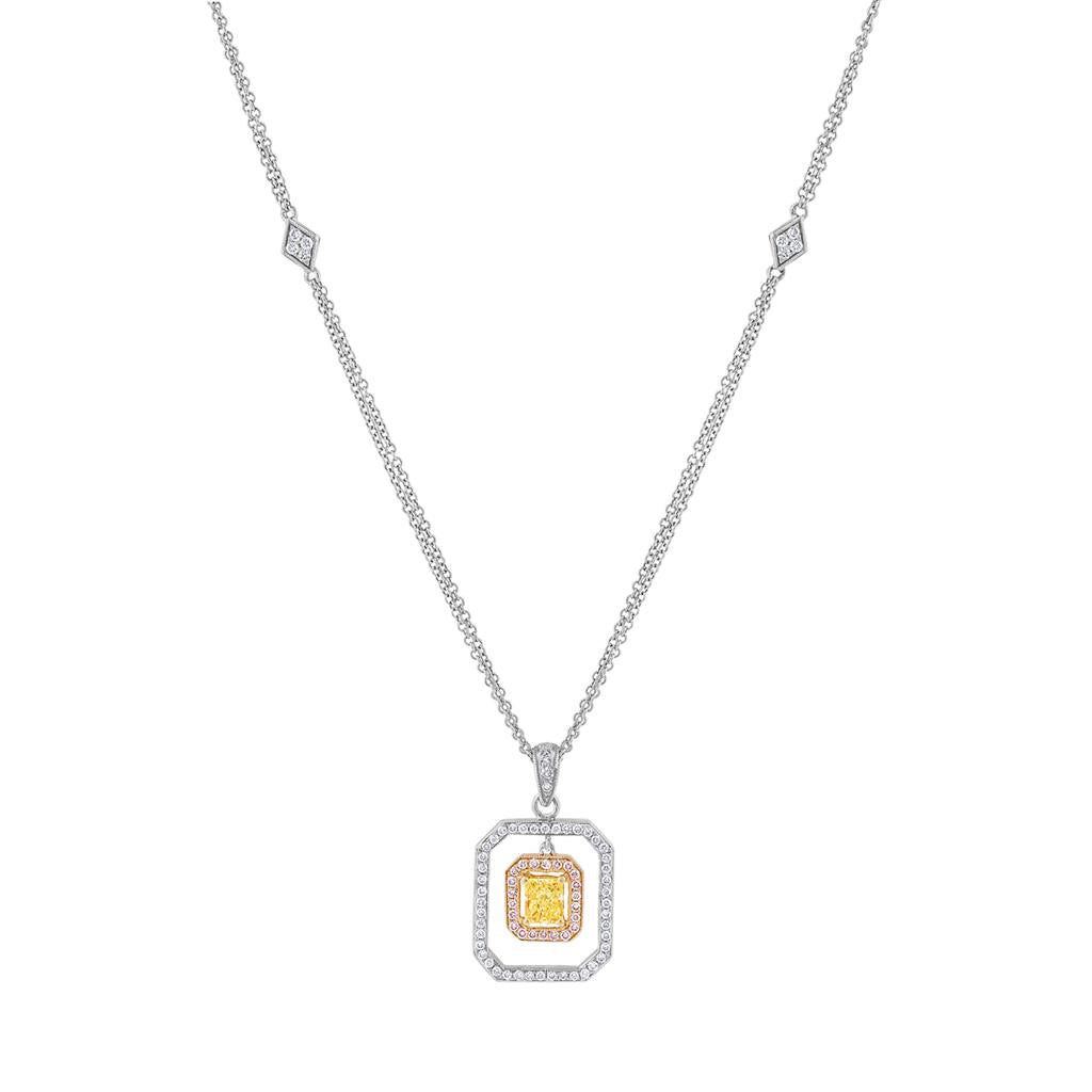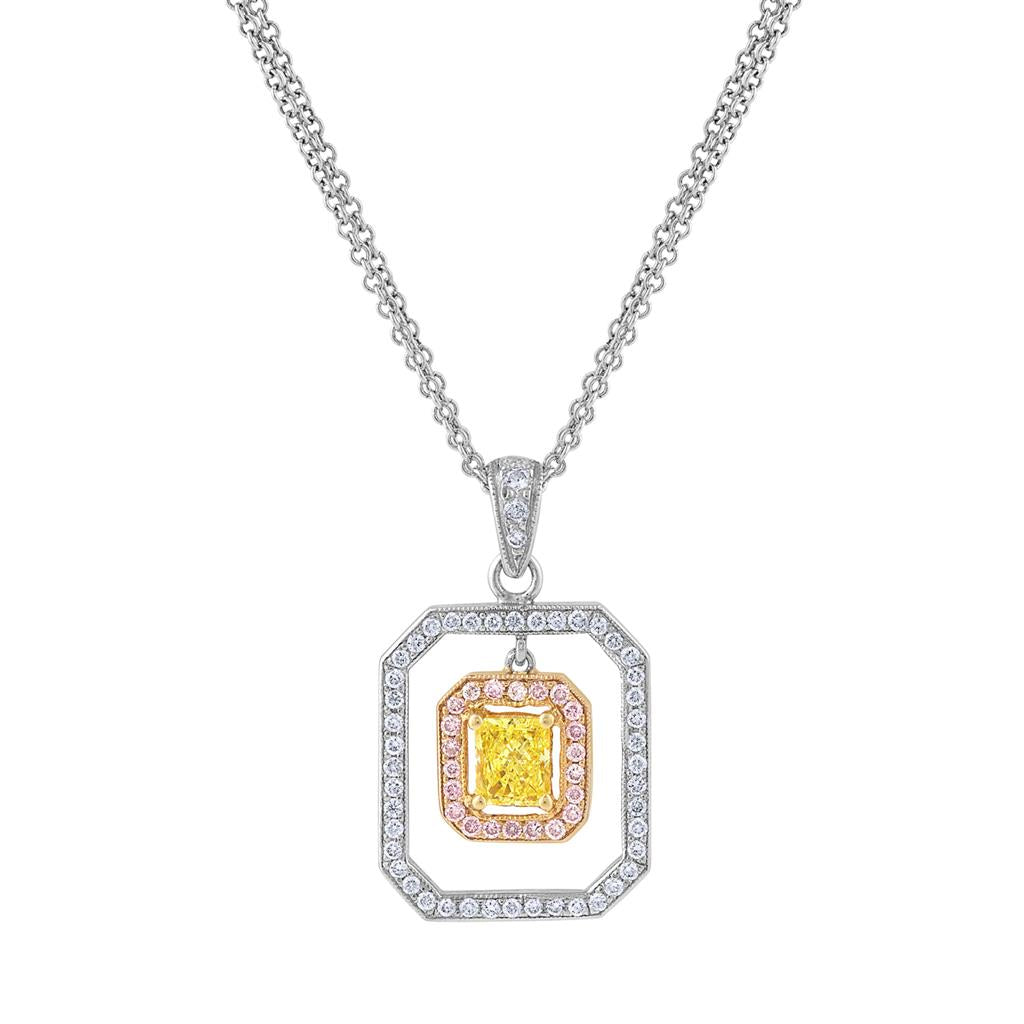 18K Tri Color Diamond Pendant with .36 Carat Yellow .15 Carat Pink & .47 Carat White Diamonds