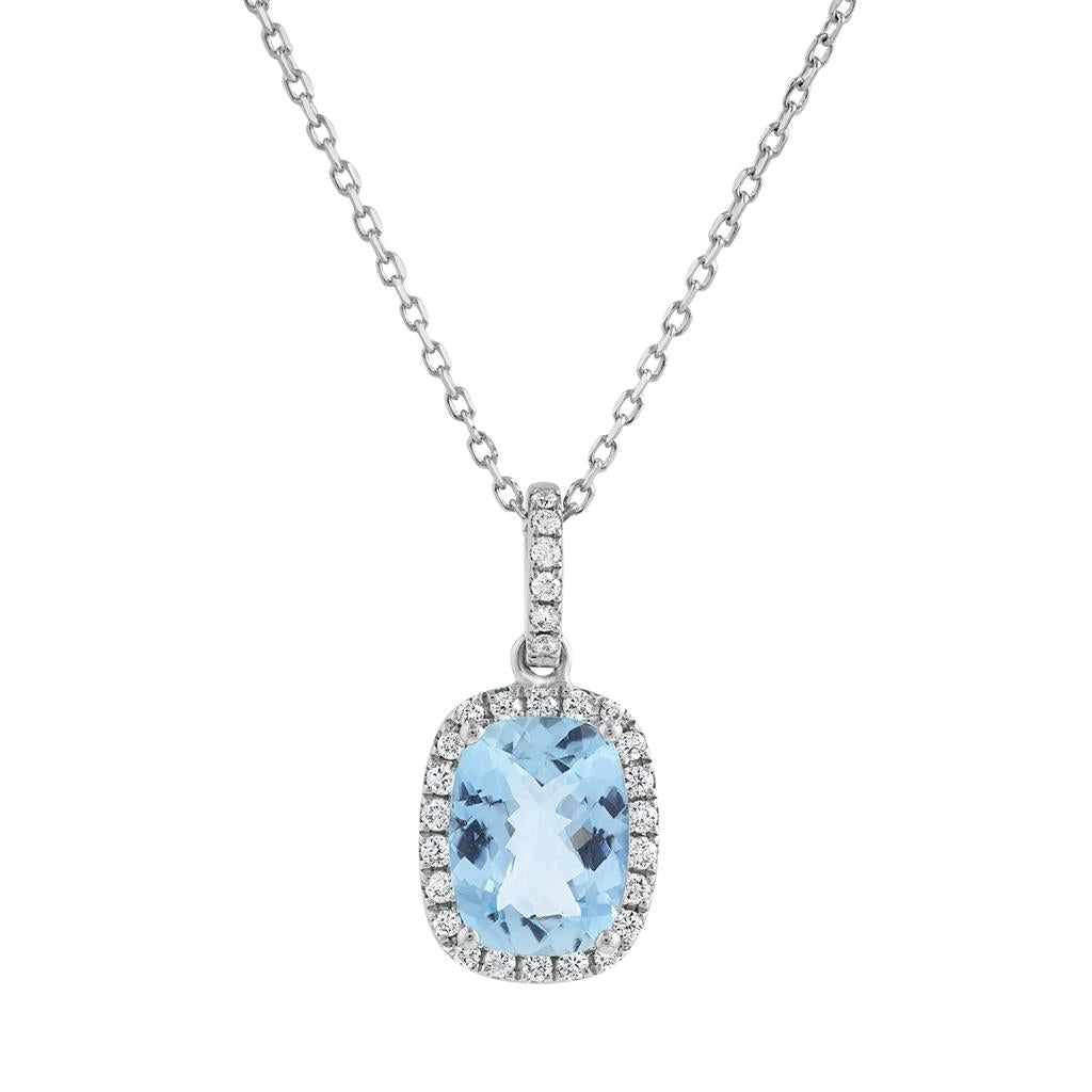 18K White Gold Aquamarine and Diamond Pendant Aquamarine 1.10 Carats 28 Diamonds .12 Carats