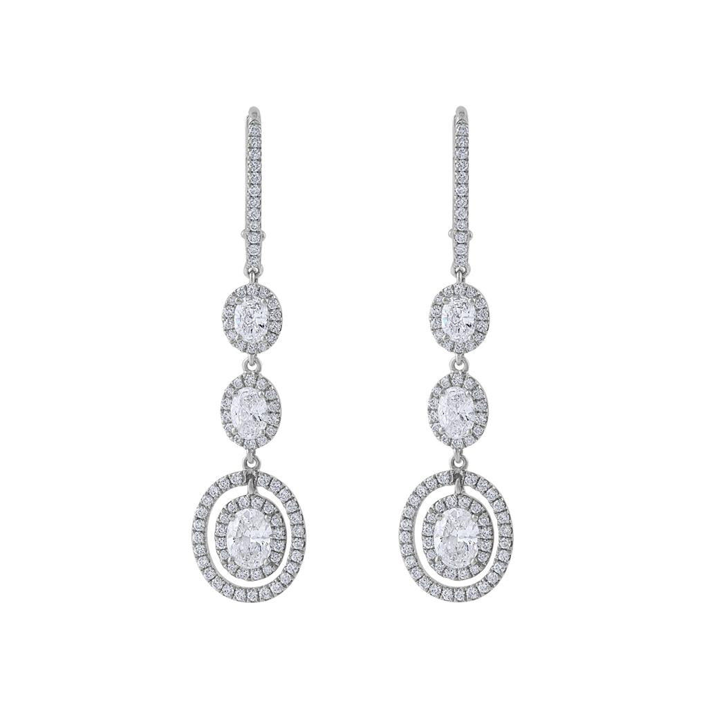 18K White Gold Diamond Drop Earrings Diamonds 2.18 Carats
