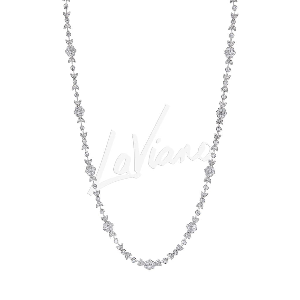 LaViano Fashion 18K White Gold Diamond Flower Necklace