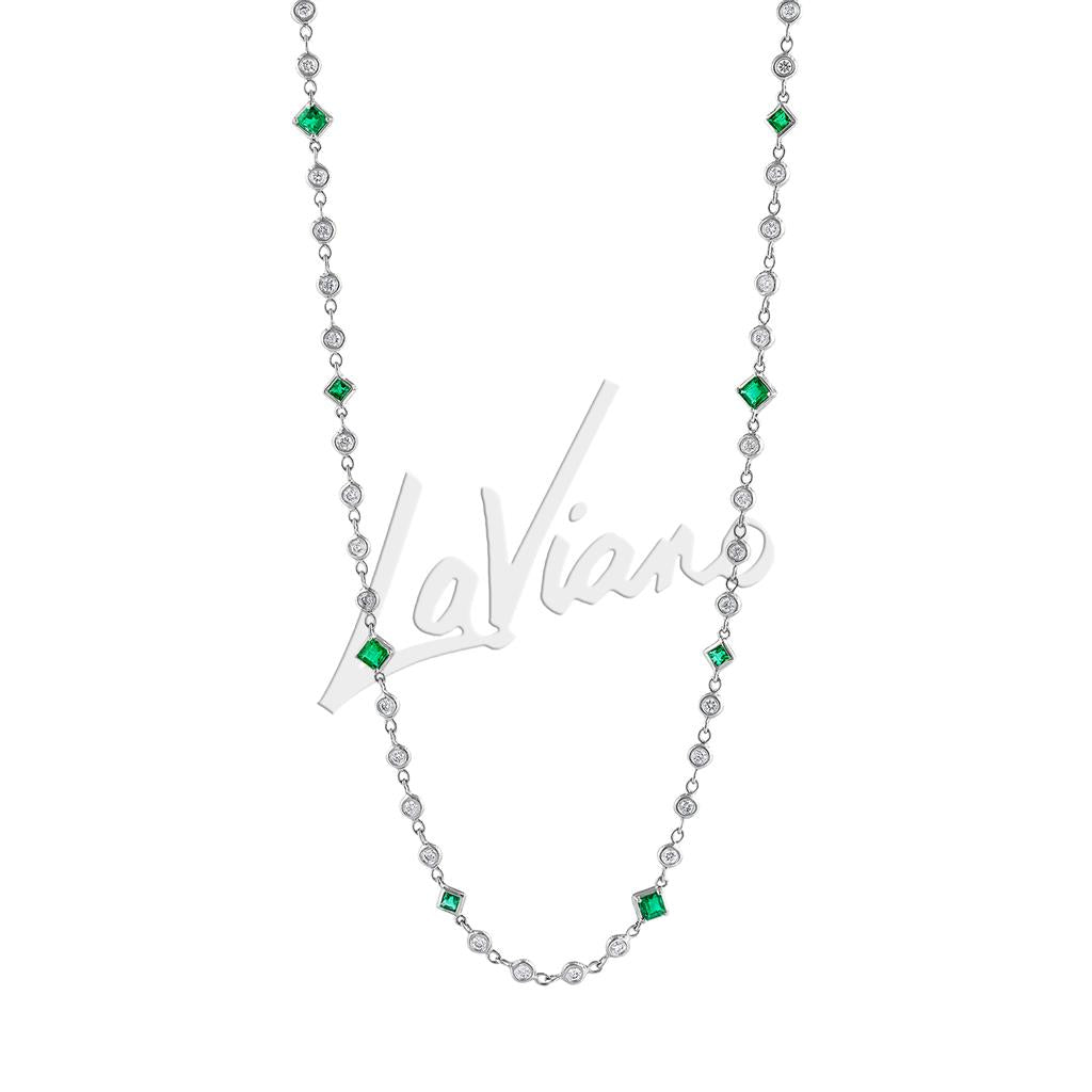 LaViano Fashion 18K White Gold Emerald and Diamond Necklace