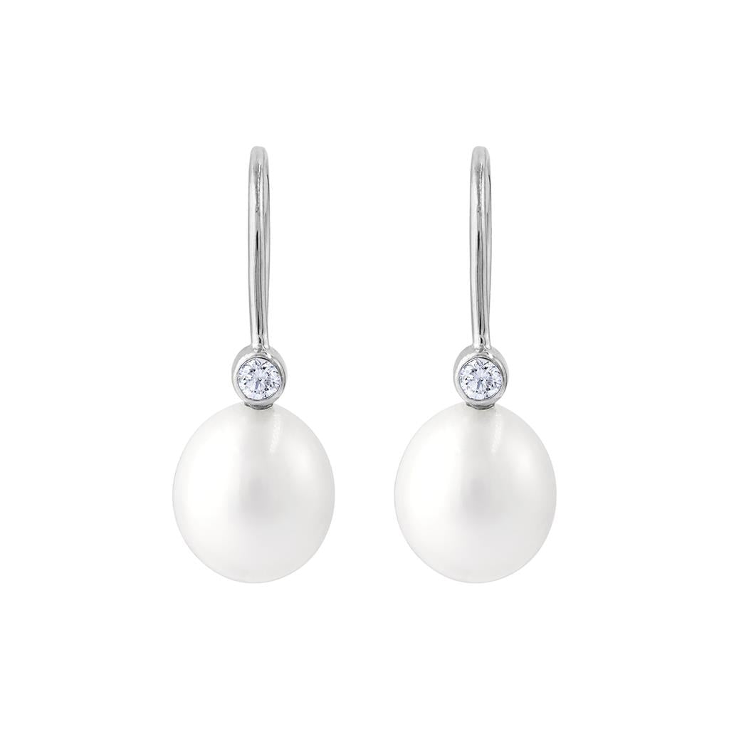 LaViano Fashion 18K White Gold Freshwater Pearl and Diamond Earrings