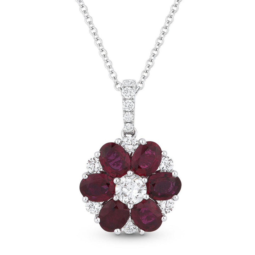 18K White Gold Ruby and Diamond Pendant 6 Rubies 1.80 Carats 12 Diamonds .53 Carats