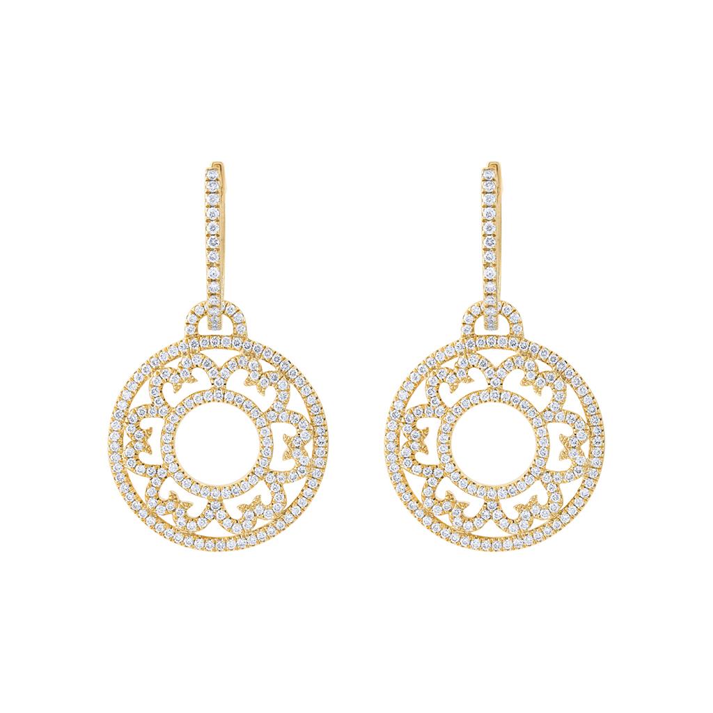 18K Yellow Gold Diamond Earrings 384 Diamonds 1.49 Carats
