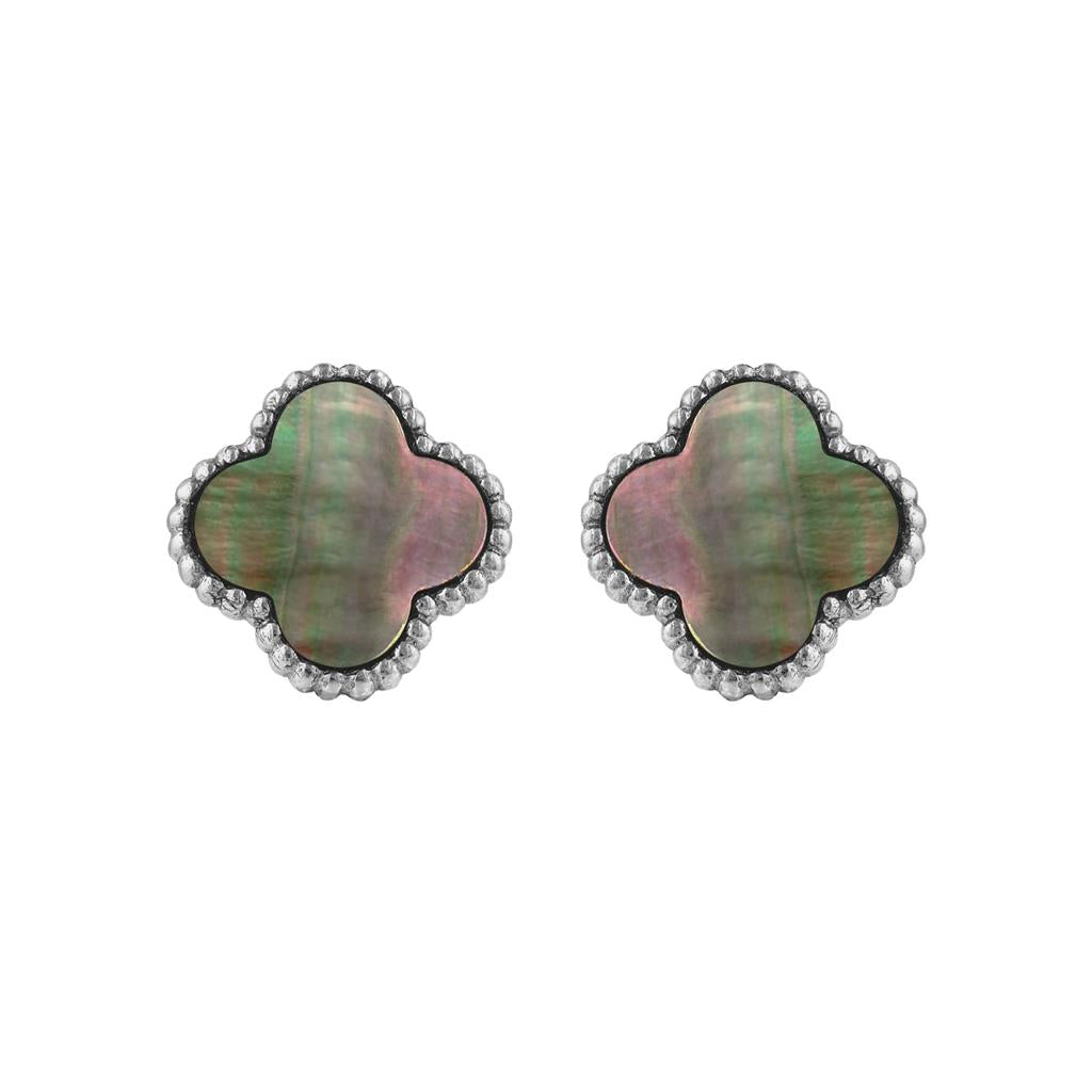 LaViano Fashion Sterling Silver Grey Mother of Pearl Large Clover Earrings