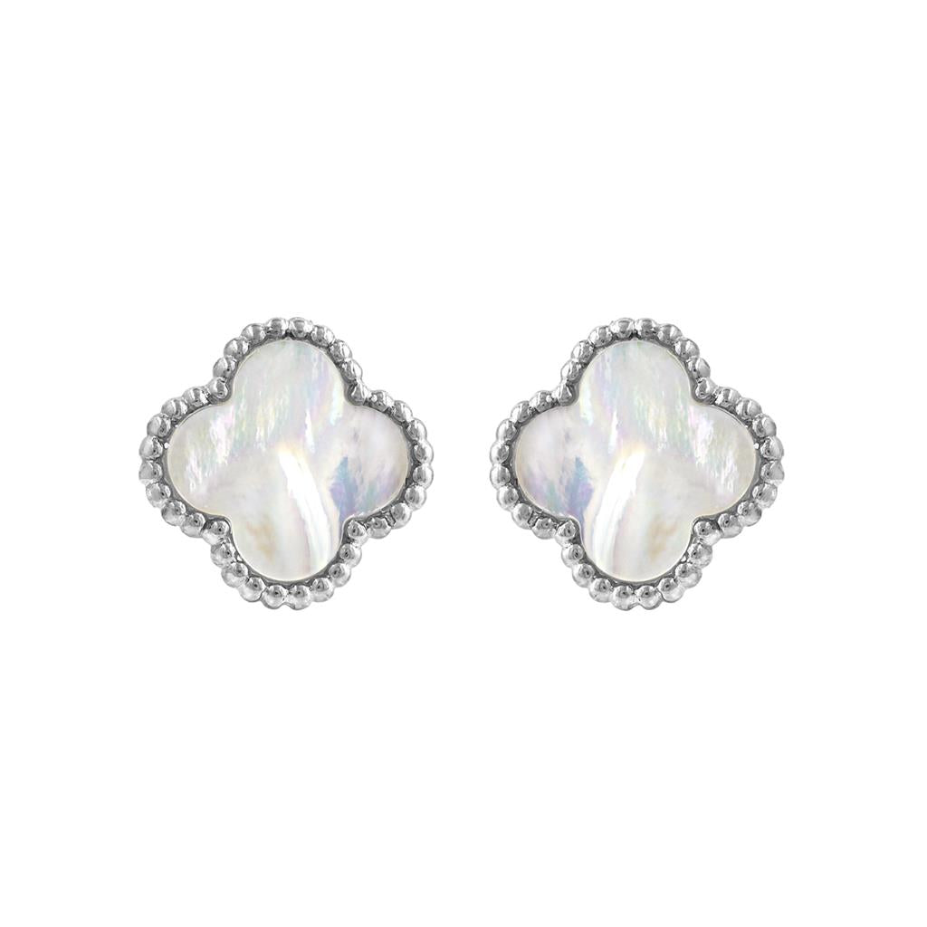 LaViano Fashion Sterling Silver Mother of Pearl Large Clover Earrings