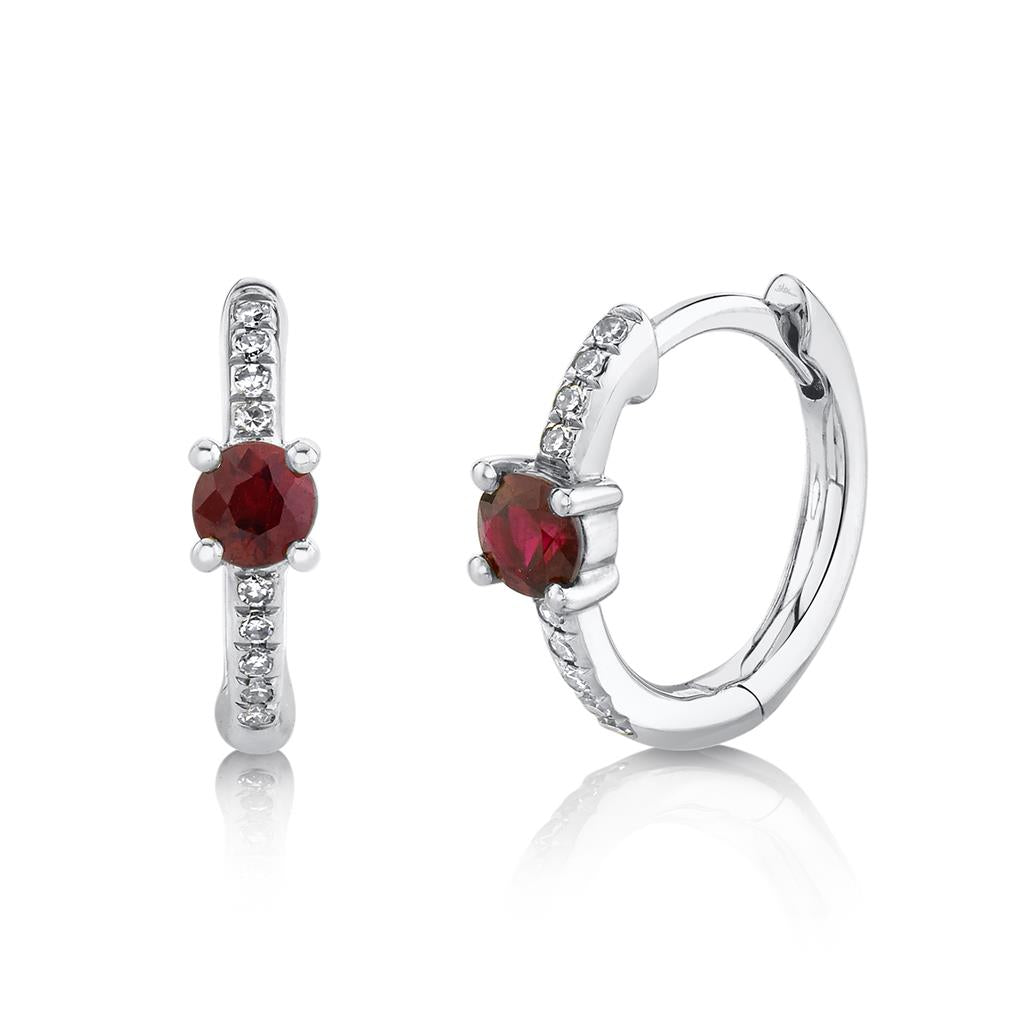 Shy Creation 14K White Gold Ruby and Diamond Earrings Ruby .29 Carats Diamonds .06 Carats