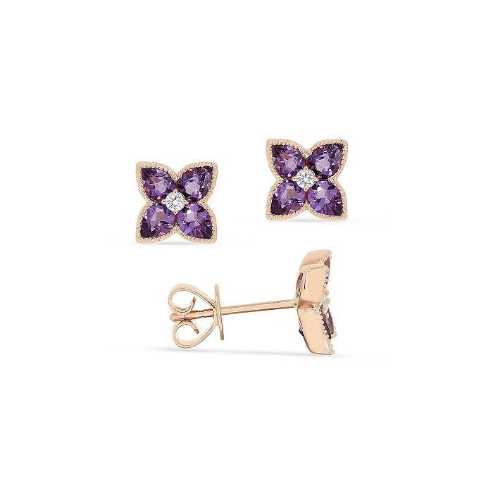 14K Rose Gold Amethyst and Diamond Earrings