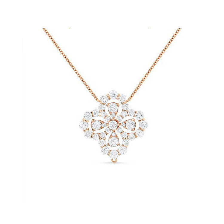 LaViano Fashion 14K Rose Gold Diamond Clover Pendant Necklace