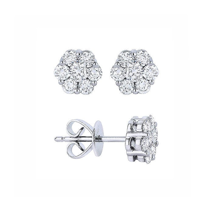 laViano Fashion 14K White Gold Diamond Flower Earrings
