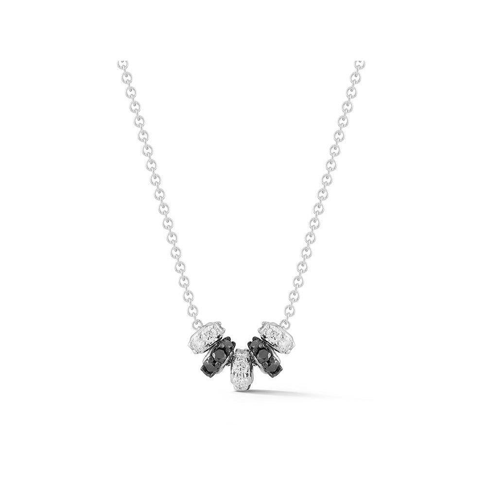 This stunning Barbela Design Diamond Odele necklace in 14K white gold sparkles with white diamonds .32 Carats and black diamonds .24 Carats
