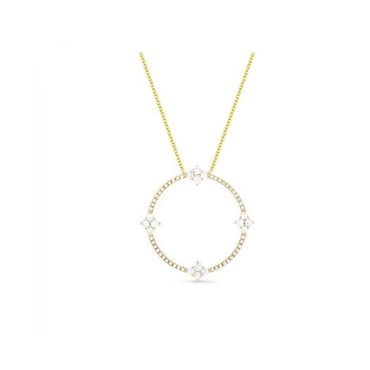 14K Yellow Gold Diamond Clover Circle Necklace.