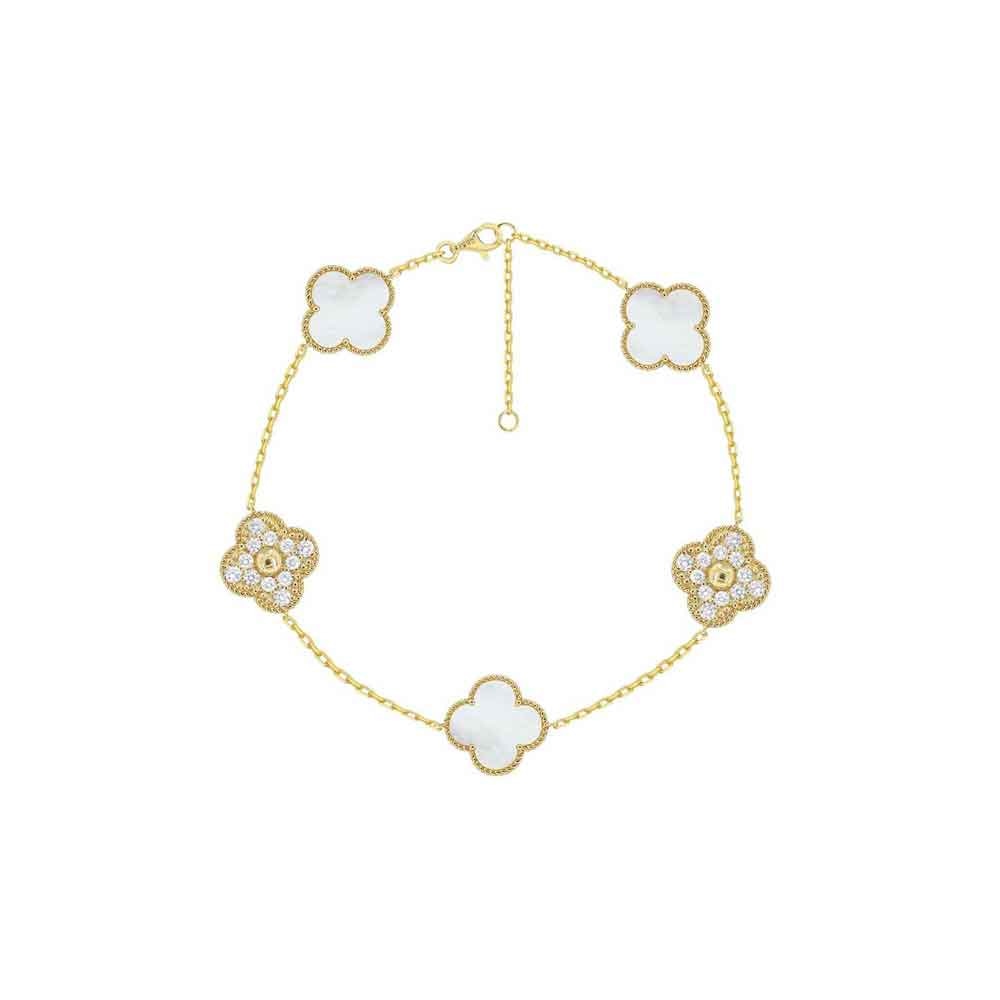 14K Yellow Gold Mother Of Pearland DiamondΒ Bracelet
