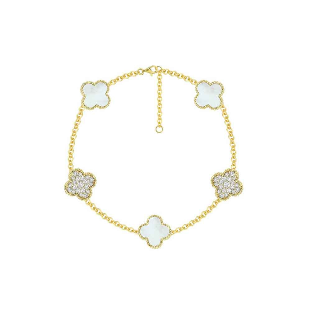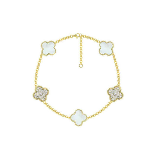 14K Yellow Gold Diamond and Mother of Pearl Bracelet