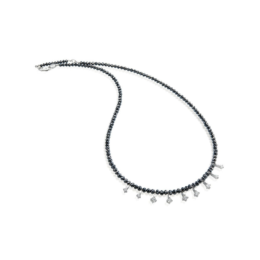 LaViano Fashion 18K White Gold Black Diamond Beaded Necklace