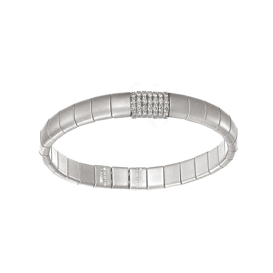 18K white gold and ceramic bracelet features white diamonds containing 0.74 carats.