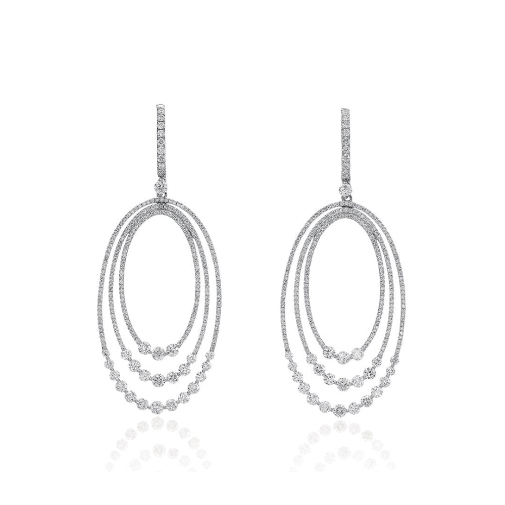 18kt white gold diamond drop earrings with diamonds weighing 3.35 carat.