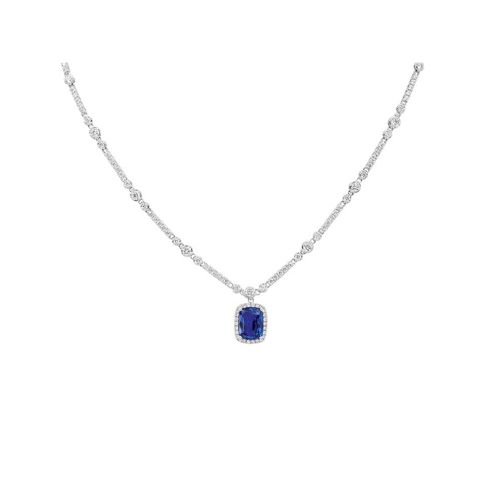 18K white gold sapphire and diamond necklace containing 4.01 carats of diamonds.