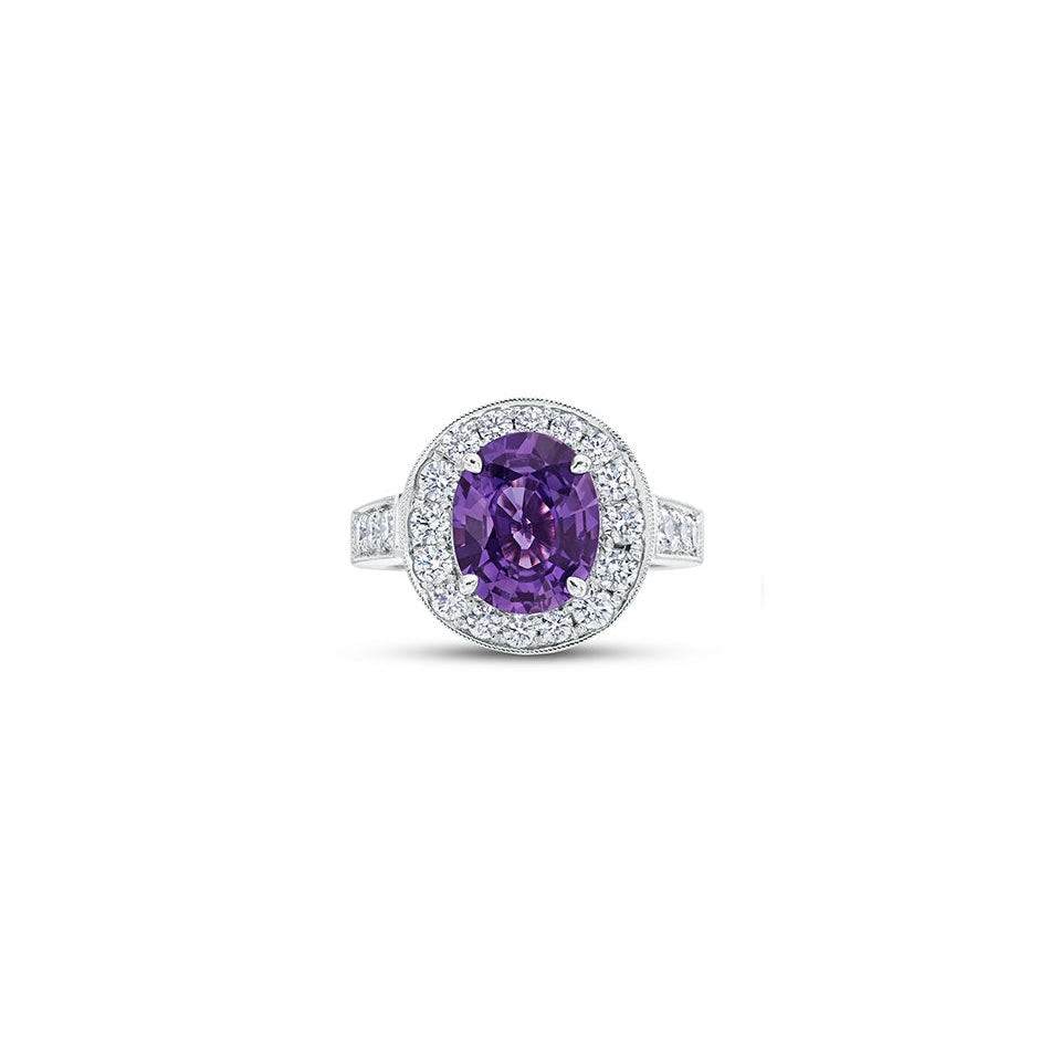 LaViano Bespoke Platinum Purple Sapphire and Diamond Ring