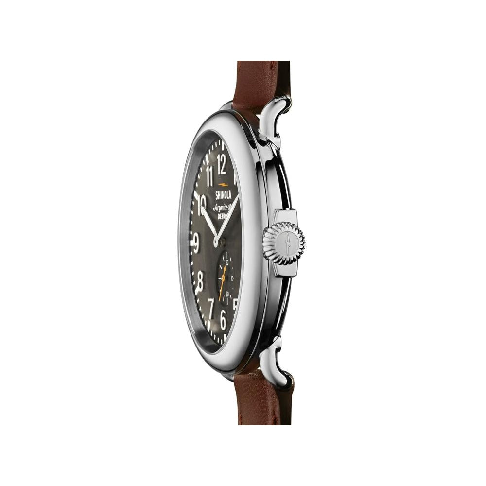 Inspired by the pocket watches used by train conductors of the 1900s, this limited-edition watch is built for extreme accuracy and readability at a glance. Features include a hacking Movement which allows for to-the-second setting, railroad tracking on the dial, a polished sterling silver case and buckle, and a white dial on a 20mm navy pebble leather strap with bourbon backing. Available in a restricted quantity of 1,000 pieces, The Canfield Cannonball celebrates the early railroad as a force that shaped American music forever. Each watch custom in a gift set in custom navy packaging with a collectible book and a 45-RPM vinyl record housed in our signature leather featuring a recording of "Set Me Down On a Cloud" and a cover of the "Wabash Cannonball" both by Lukas Nelson.