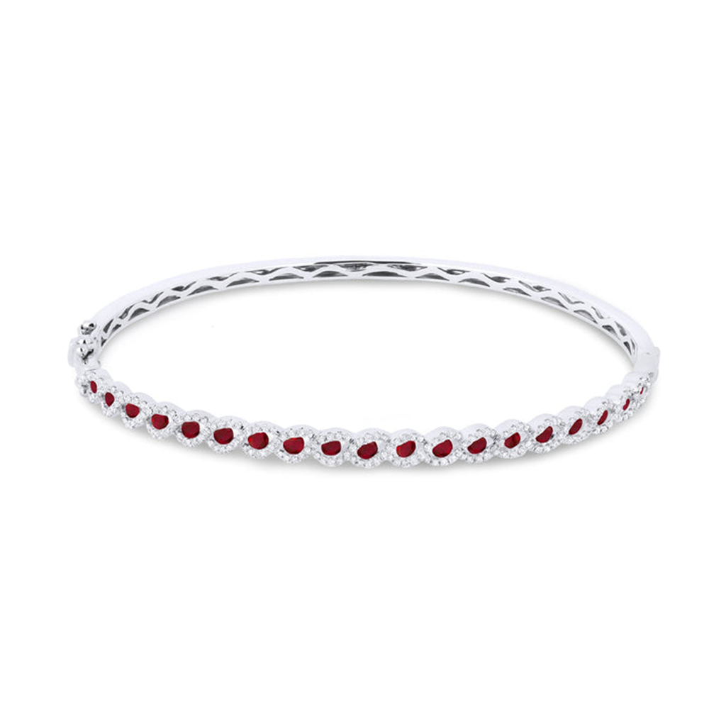A beautiful bracelet featuring stunning diamonds and rubies around the entire piece. Add sparkle to any look with this white gold bracelet.